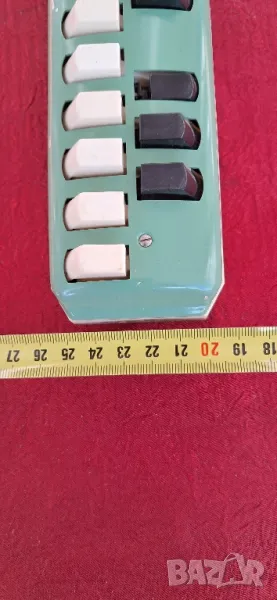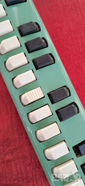 Стар рядко срещан музикален инструмент на Хохнер-Германия,състояние видно на снимките изключително запазен за годините си, същият функционира тоест работи издава различни тонове с натискане на клавишите, същият е с лека забележка един от клавишите е потънал,може да се поправи но който му разбира,размер на снимките. За колекционери и по предназначение.