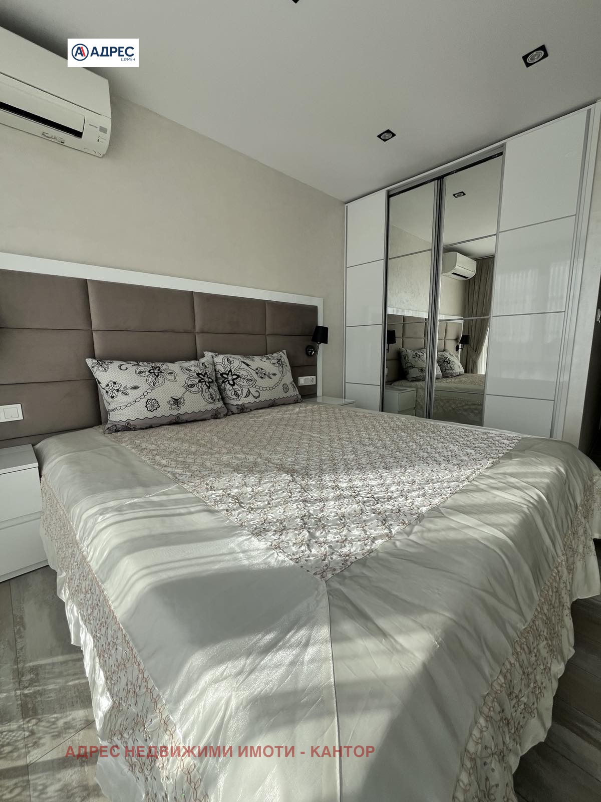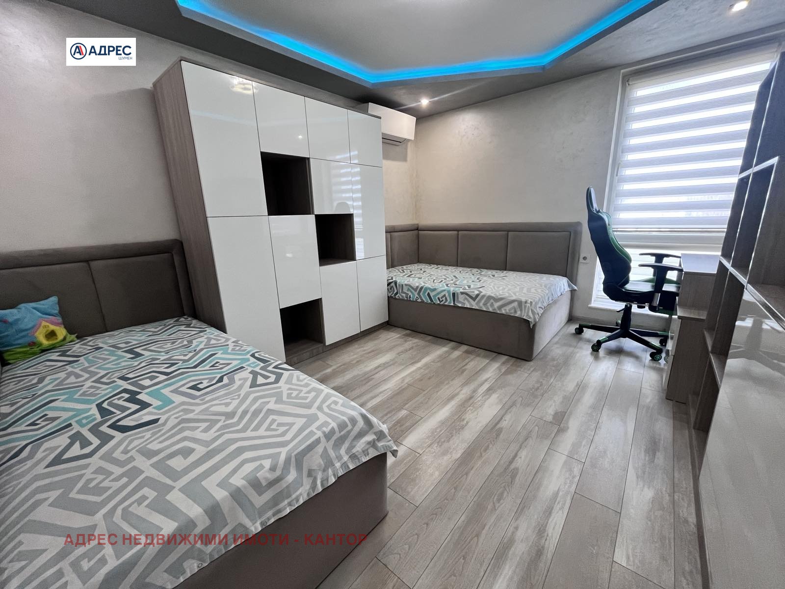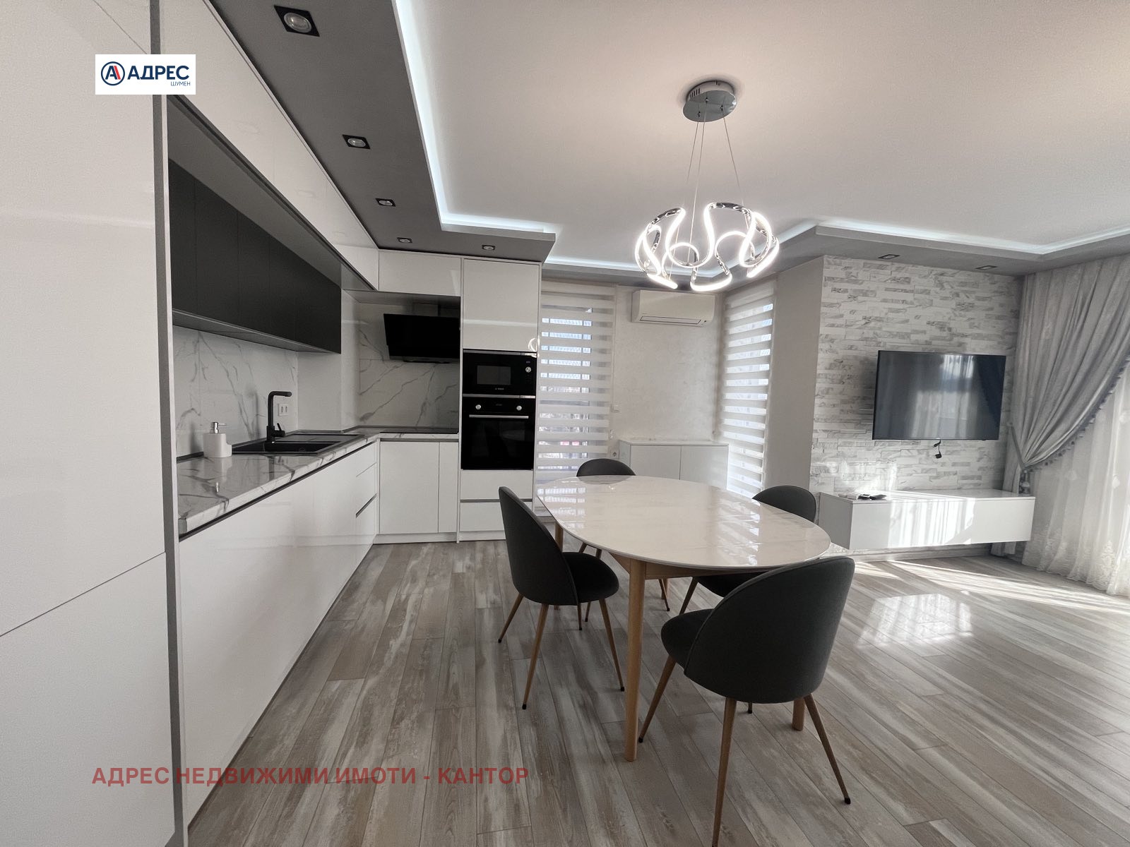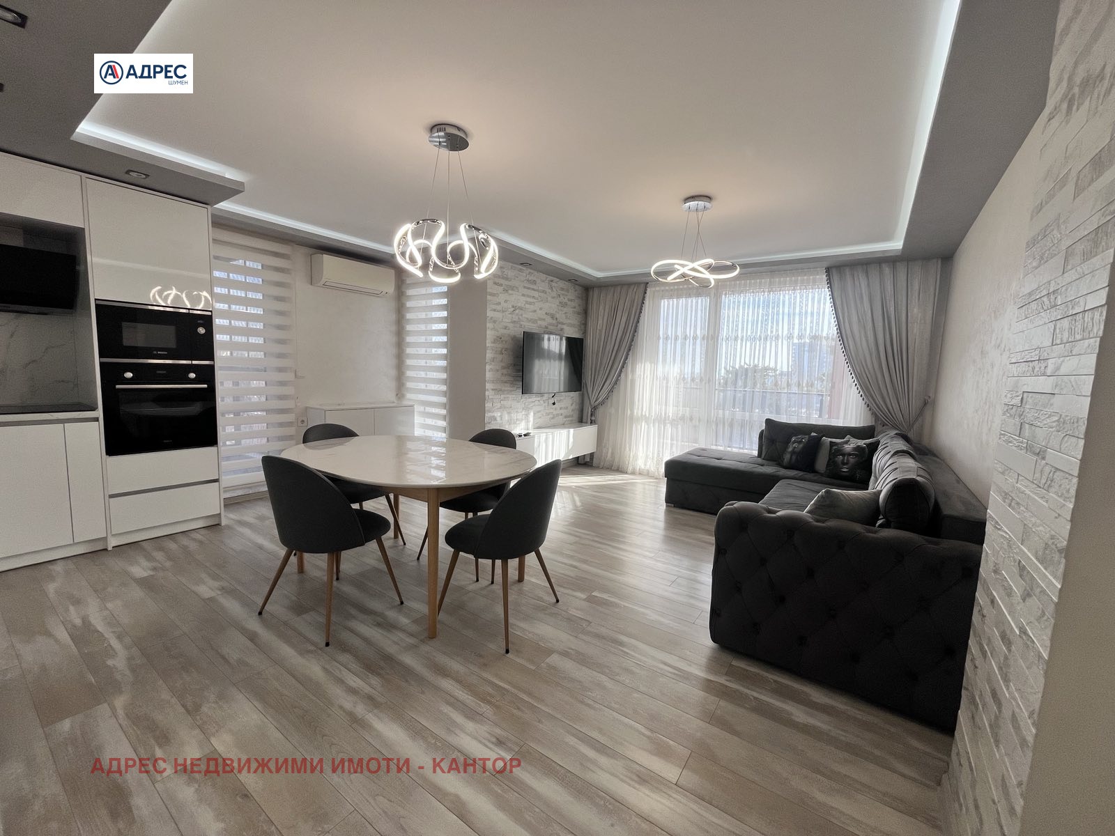 Адрес Ви предлагат тристаен апартамент под наем в района на Пазара. Жилището е на трети етаж, разпределено на дневен тракт с излаз на две тераси, спалня със собствен санитарен възел и гардеробна, детска стая и баня с тоалетна. Имота е газифициран, като има и поставени климатици. Апартамента е напълно обзаведен със всички необходими ел. уреди. В наемната цена има включено и подземно паркомясто.