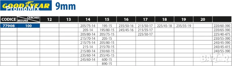 Вериги за сняг Goodyear 77908 G9 9mm 14' 15' 16' 17' 18' 19' автомобилни вериги за сняг