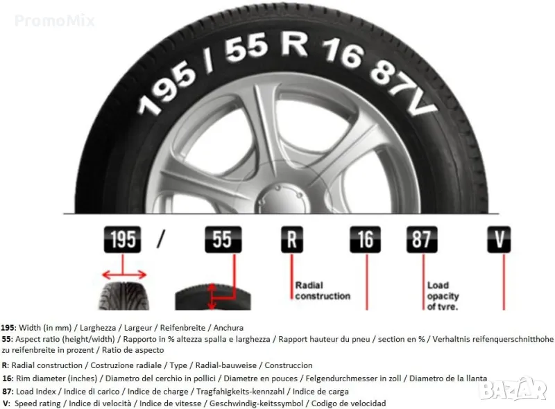 - Размер на гумите: 14' 15' 16' 17' 18' и 19' цола