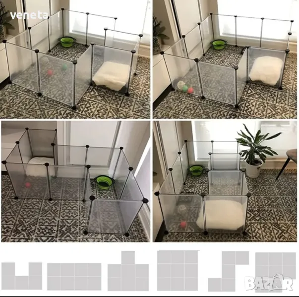 Кошара за домашни любимци Голям пластмасов преносим двор Клетка за ограда на закрито и на открито за малки Животни; Хамстери, кученца, котенца, зайци 45х35см Размер: 12бр