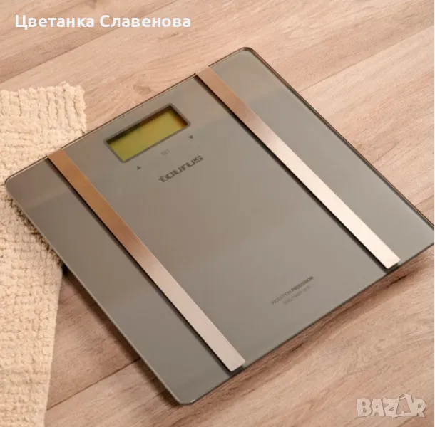 Интелигентна везна за баня, която изчислява теглото, процента мазнини и телесната вода. Той предлага LCD екран с добра видимост, ултра-темпериран ултра-плоскостен дизайн и има памет за 10 потребителя. Включва батерии.