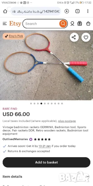 Винтидж, колекционерски, дървени ракети за бадминтон Komet Germina, производство ГДР.Използвани са но са с почти незабележими забележки по лака. Кордата е оригинална. Това, което отличава модела е различните цветове на дръжките. Идеални за колекция, декорация и дори за игра.На последната снимка съм показал цена в сайт за колекции.