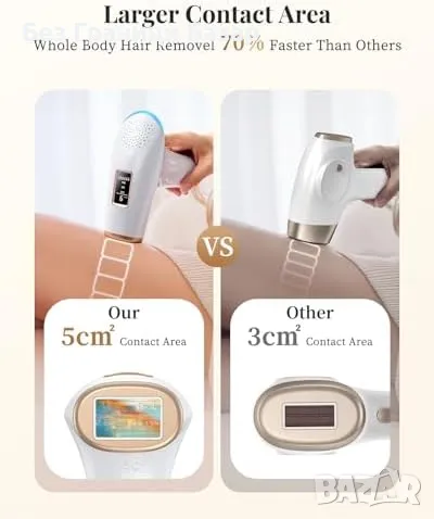 Бързо и ефективно обезкосмяване: Уред с 5 см² прозорец за мигновени резултати - цялостно обезкосмяване само за 10 минути.