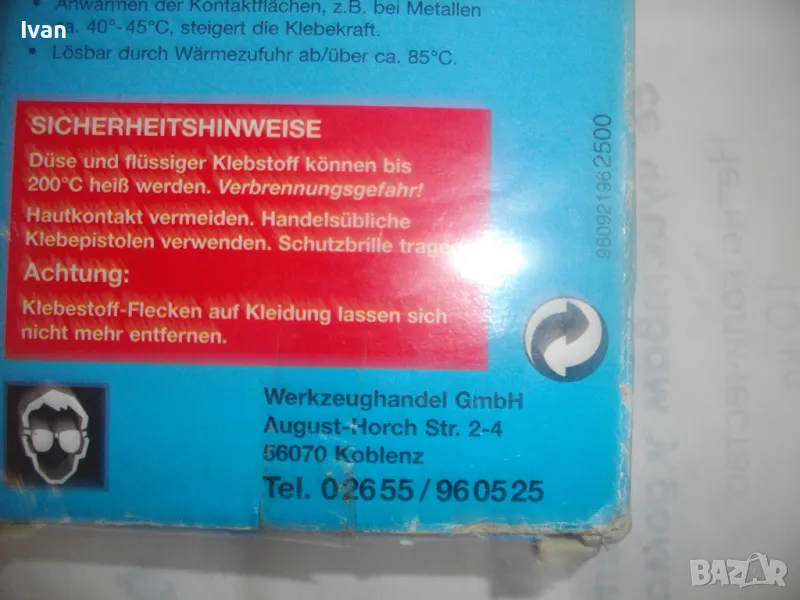 1 бр. кутия и 1 бр. пакет с оригинални немски силиконови пръчки за лепене - универсален ГОЛЯМ размер дължина 200 мм, дебелина ф 11 мм.
