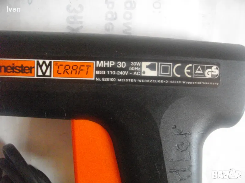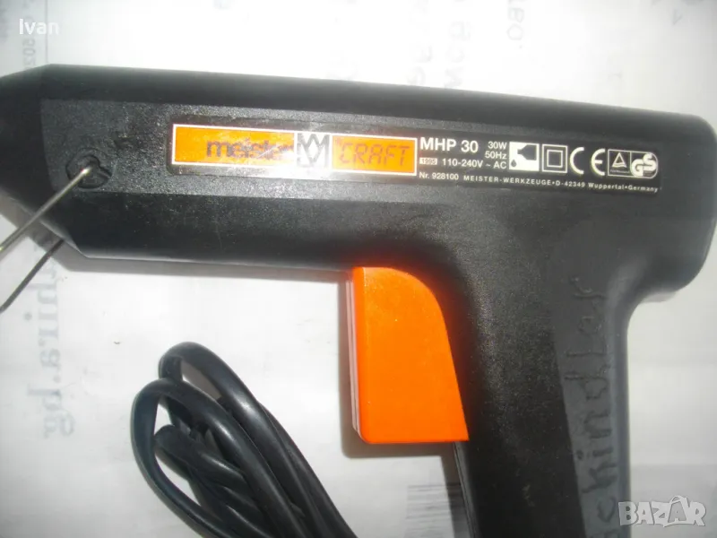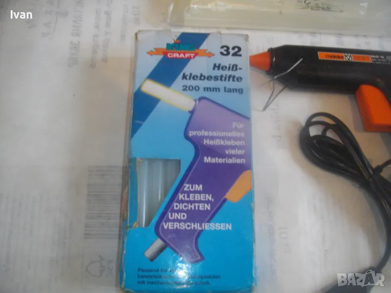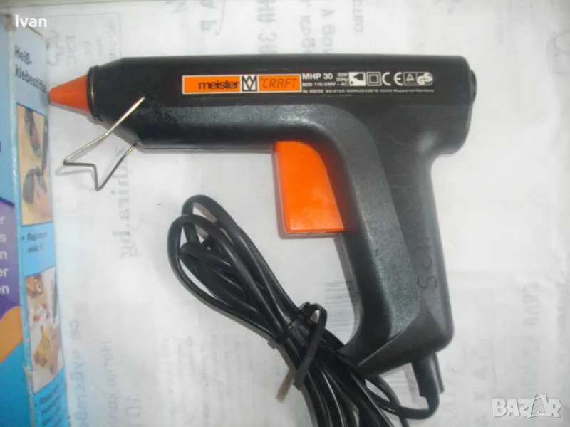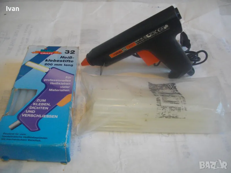 Немска лепачка за топло/горещо залепяне посредством разтопяване на пръчки силикон, 30 ватов модел на Мейстер Крафт, заедно с два пакета големи силиконови пръчки - цена 89 лв.