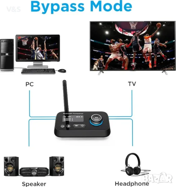 УНИКАЛНИ ХАРАКТЕРИСТИКИ ЗА БАЙПАС И ВРЪЗКА С ДВОЙНИ УСТРОЙСТВА: Влезте в режим на байпас и можете да имате опция за слушане на телевизионна звукова лента + слушалки или високоговорител, без да прекъсвате връзката. Нашият
