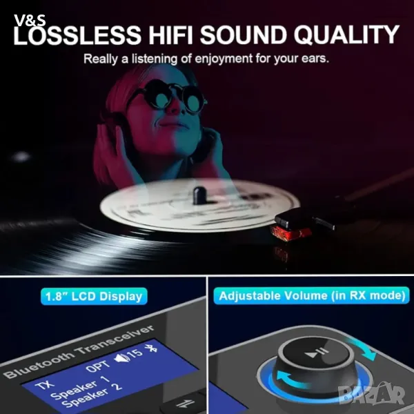 bluetooth приемник предавател може да бъде сдвоен с 2 Bluetooth устройства едновременно, така че можете да споделяте музика или филм, без да безпокоите другите. Ако регулирате силата на звука, силата на звука и на двете устройства се регулира едновременно. Ако имате увреден слух, той също е перфектен с този bluetooth аудио адаптер.