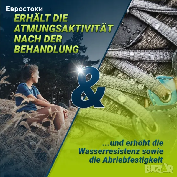 Екологично и щадящо кожата: нашата текстилна импрегнация е базирана на вода, биоразградима е, не съдържа вредни PFC и е дерматологично тествана за съвместимост с кожата. Няма опасни стоки.