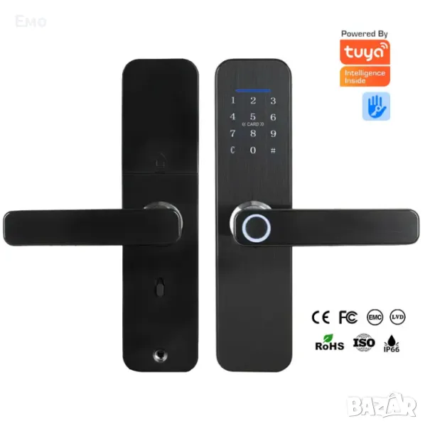 Смарт брава за врата отключване с пин код, пръстов отпечатък приложение. Роботи с Батерии 4 бр. AA