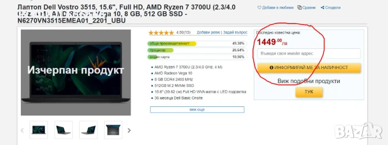 Лаптоп dell vostro 3515 ryzen 7 - 36 месеца гаранция → Обява 48605203