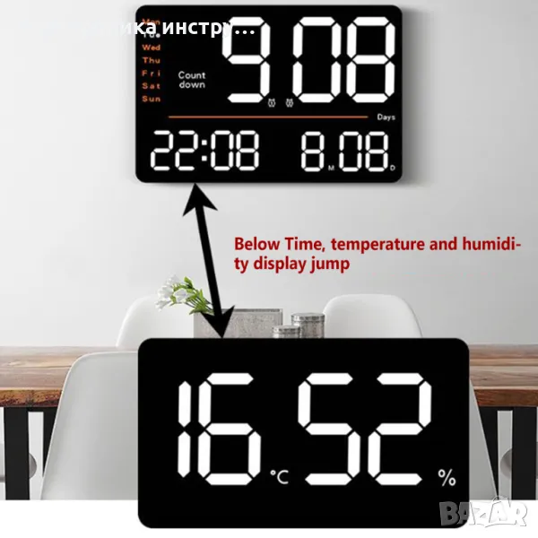 Цифров стенен часовник Часовник с голям дисплей и цифри X6636