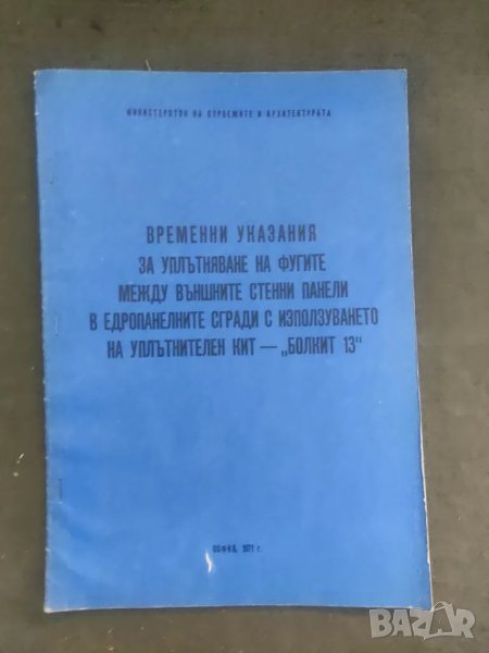 3.Временни указания за уплътняване на фугите между външните стенни панели в едропанелните сгради с използването на уплътнителен кит - " Болкит 13" - 1971г.31 стр.