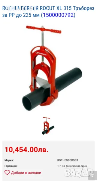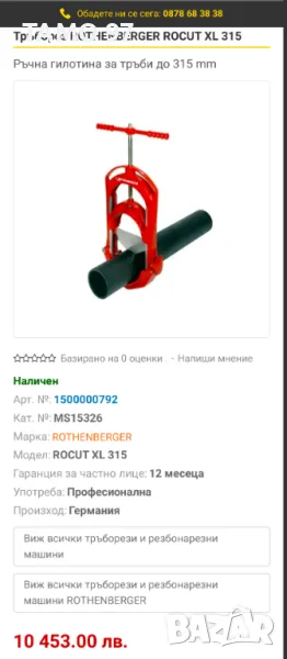 гилотина (голям тръборез) на Ротенбергер за тръби до Ф315мм и дебелина на стената 18мм