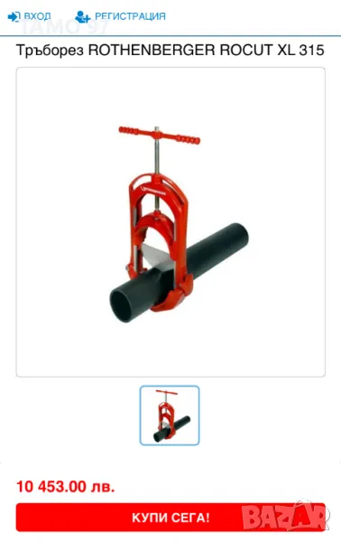 в изкопи и за извършване на ремонтни дейности. Има оптимизиран ъгъл на рязане, а долната скоба може да се сгъва напълно, което го прави универсален за всякаква позиция на тръбата. Тръбореза е като нов и използван само за 2-3 сряза, както се вижда и на едната снимка острието няма никаква забележка, внос от Франция.