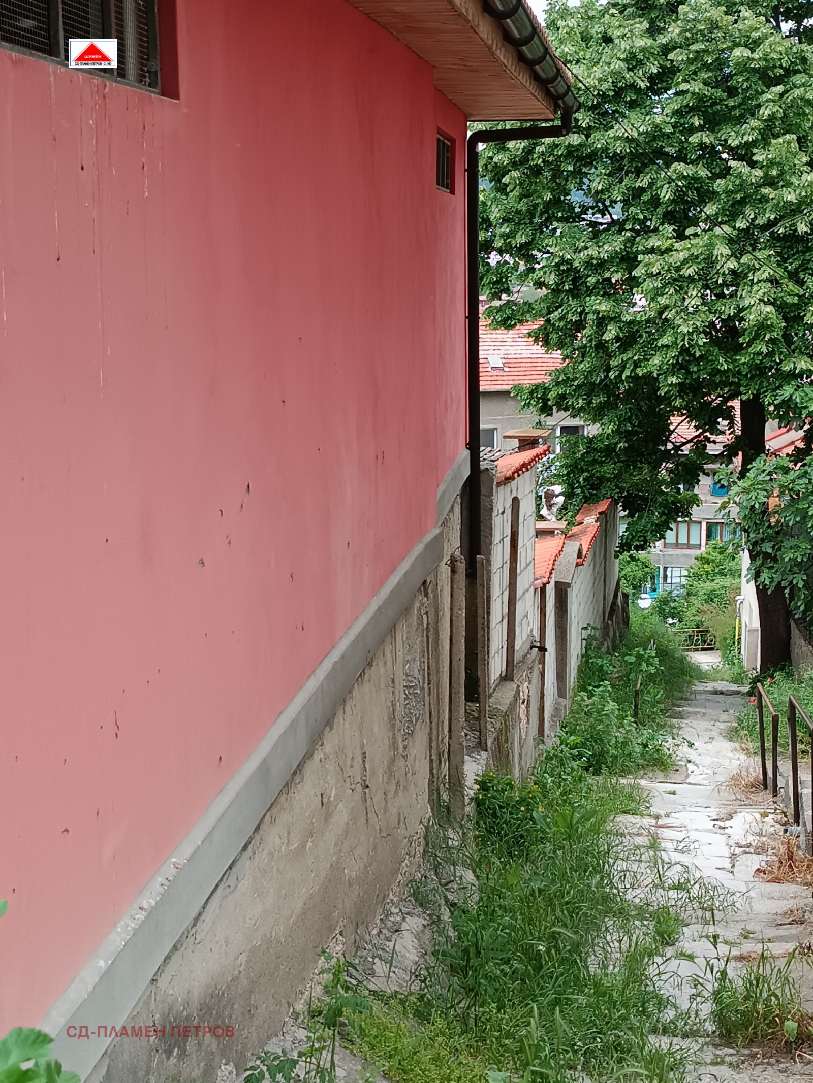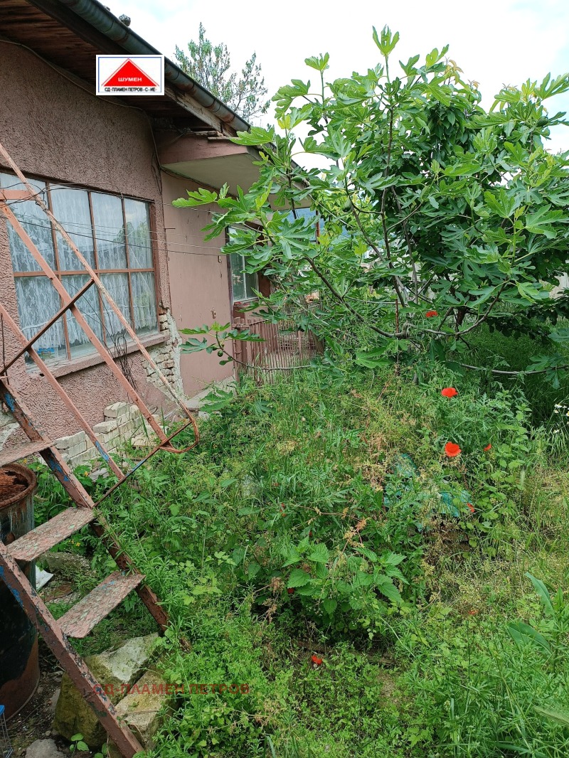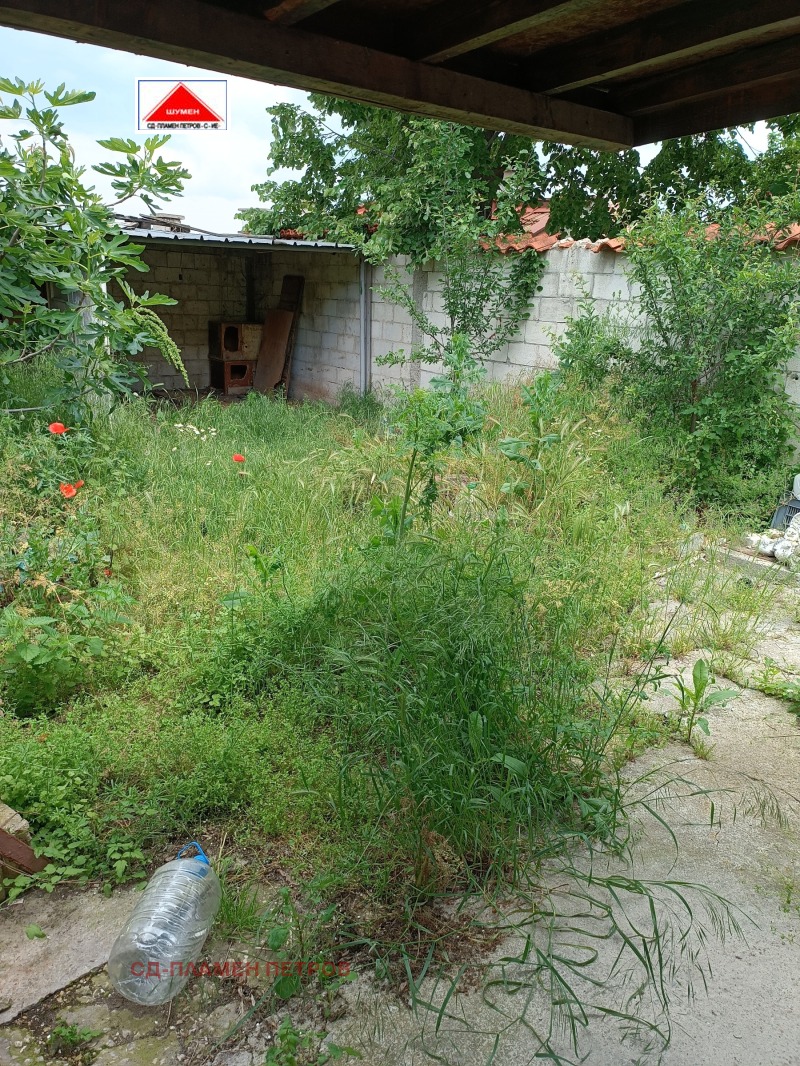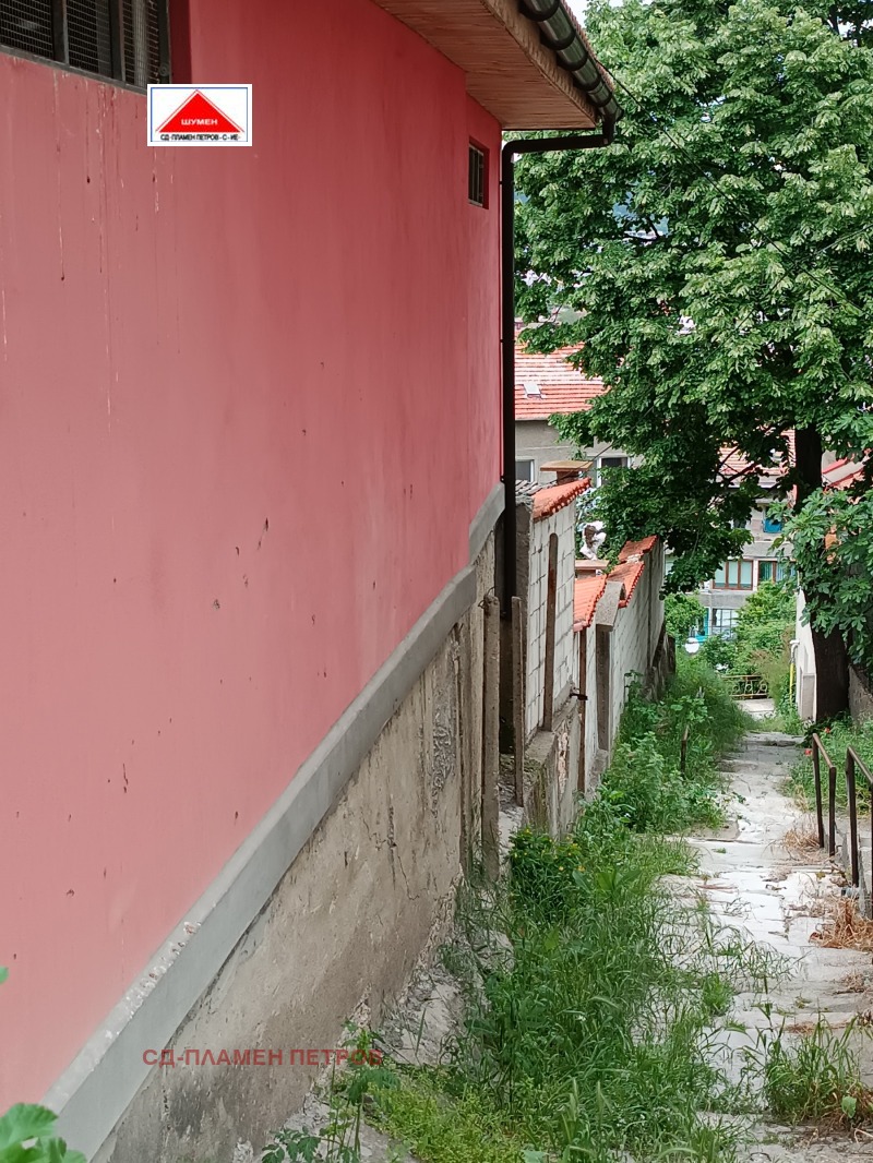 Агенция Пламен Петров продава тухлена къща на плоча, Оградена цялата с масивна здрава ограда с бетонни блокчета с две входни и изходни врати .Къщата се намира в спокоен и тих квартал в съседство с многофамилни красиви къщи в подножието на Шуменското плато подходяща и за други бизнес цели.Площа на имота е 437кв.м в който са изградени голям гараж ,стопански бетонни постройки , основна къща с три стаи баня и тоалетна, още една втора сграда 21 кв стая с баня и тоалетна ,Навес за лятно ползване и отдих и цветна градинка.