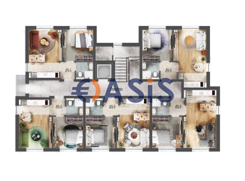 Обща площ: 53,07 кв. м.