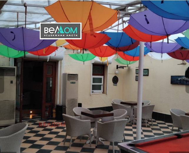 Агенция ВЕЛДОМ дава под наем заведение/дентален център/офис/казино с площ 230 м2 в района на Лятно кино Тракия и Макдрайв. Състои се от вентилирани търговска зала и кухня, склад, 2 санитарни възела и закрита зимна градина. Статут: кафе-аперитив. Брой места: в заведението 85, пред заведението 25. Напълно оборудвано и обзаведено съгласно всички изисквания. С всички необходими документи и разрешителни на Община Варна, включително ХАСЕП система, готово за работа.