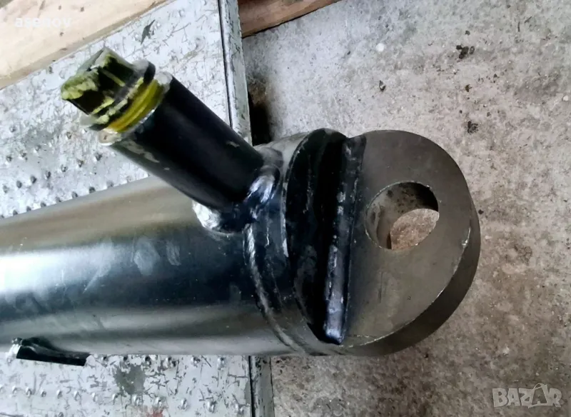 Продавам хидравличен цилиндър с дължина 105 см, диаметър на цилиндъра 16 см, диаметър на стежен 10 см, ход 75 см