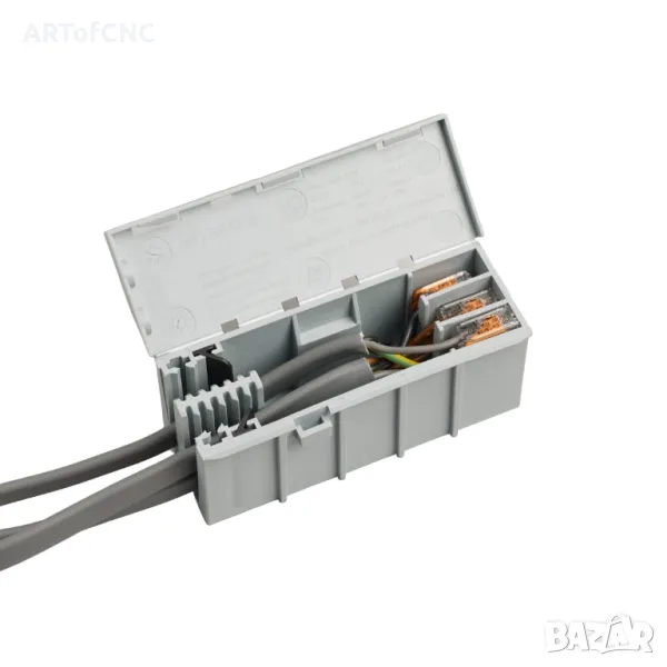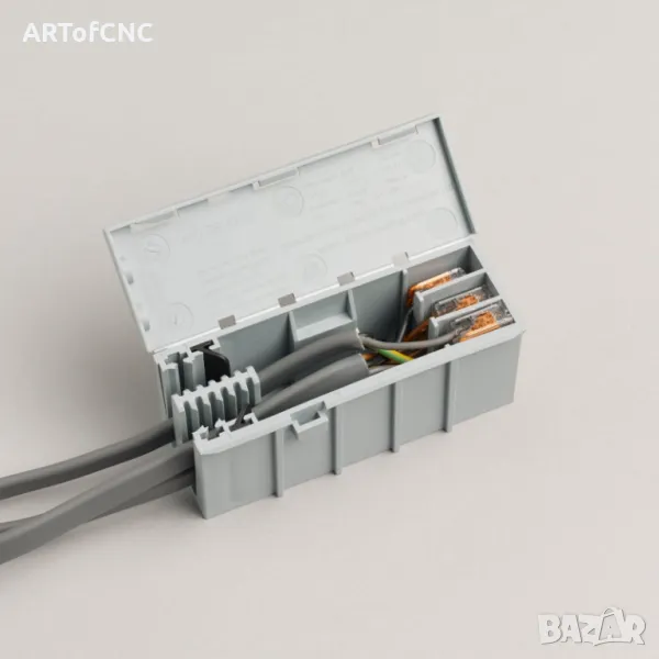 Разклонителна кутия специално проектирана за инсталационна клема с лост WAGO серия 221-4хх (221-412, 221-413 и 221-415). Разполага с 3 вертикални гнезда, в които могат се монтират по една клема 221-415 или комбинация от по-малките. Тоест в едно вертикално гнездо могат да се поберат:
