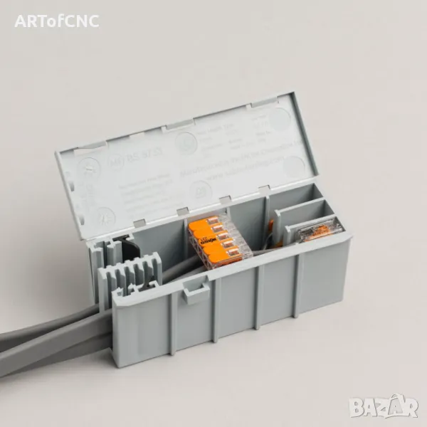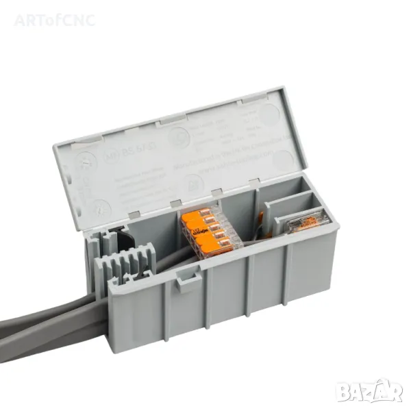 ЗАБ: След полагане на кабелите, е възможно кутията да се отвори леко от страната където влизат кабелите. При затваряне на кутията е нужно леко да я стиснете, преди да затворите капака. След затваряне на кутията имате възможност да я подсигурите допълнително срещу отваряне чрез кабелна скоба, има канал специално проектиран за тази цел.