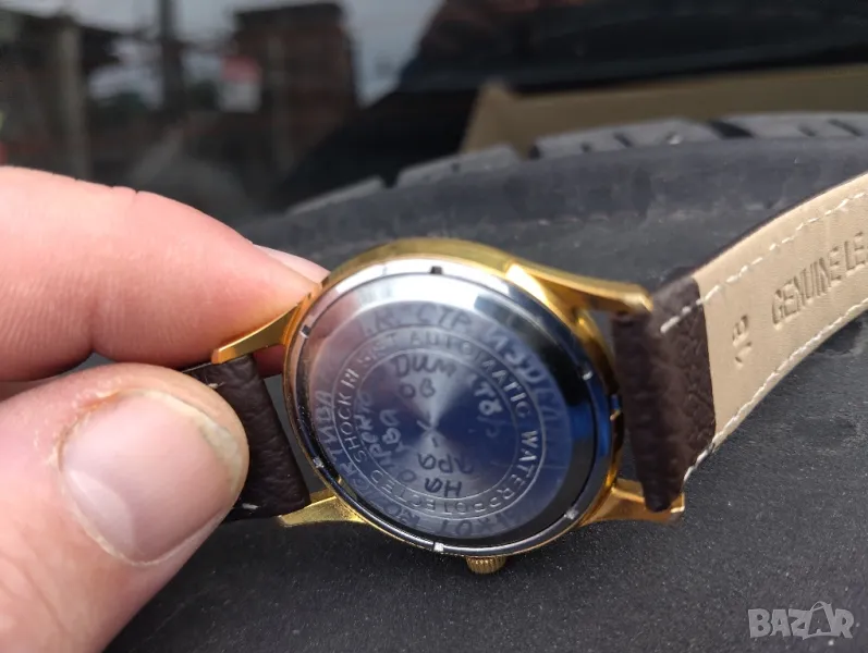 Касата – позлатена в мн. добро състояние, маркирана - 20 микр. Часовникът е с кожена каишка. Широчина при лъговете - 18 mm. Диаметър на касата без коронката - 35 мм.