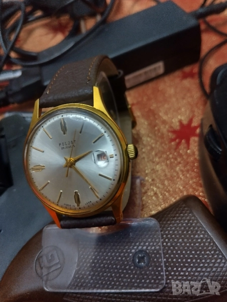 За този часовник всичко е известно и публикувано .100% автентичен руски /съветски/ часовник, автоматик, с възможност и за ръчно навиване, отлично състояние, мн. запазен - циферблат, цифри, стрелки, печат и машина – моля разгледайте подробно снимките! Часовника е висок клас, кал. на машината - 2415 - мн. качествена машина с 29 рубинови камъка, противоударен прецизен баланс, централна секундарна стрелка, амортисиори на баланса и анкъра - действително противоударен часовник. Надеждна и безотказна машина. Вибрации на баланса - 18000/час. Самонавиващото се устройство - ротора е интегриран в механизма, вместо да е прикрепен към него, т.е. да се прикрепя към калибър с ръчно навиване, както е обикновено. Това на практика води до сензационно тънък механизъм за времето си, височината е едва 4 мм. Часовникът е след пълна профилактика и поддържа мн. точно време за механичен часовник: +-10-15sec/ 24 h. Запас на хода - около 36-37 часа. Надписите върху циферблата: