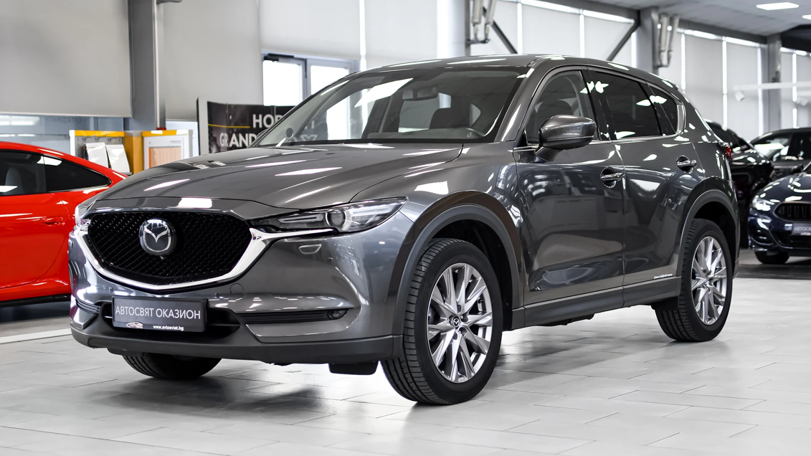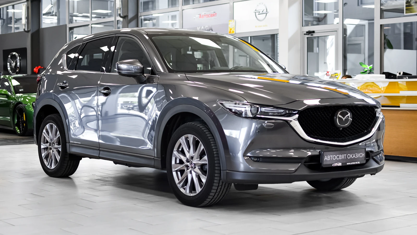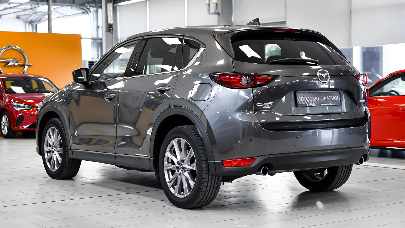 Автосвят ООД - официален представител на Opel и Mazda, предлага на Вашето внимание клиентски автомобил Mazda CX-5 ULTIMATE 2. 5 SKYACTIV-G 4x4 Automatic Безупречно техническо състояние, екстериор и интериор. Автомобилът е регистриран. Автомобилът се използва ежедневно и е възможно отклонение от обявените километри към датата на публикуване на обявата. За оглед на автомобила е необходимо предварителна уговорка. Допълнителни услуги: - лизинг; - сътрудничество при регистрация; - възможност за обратно изкупуване; - посредничество при застраховане; - посредничество при завеждане на щети при застрахователя. Цвят - Machine Gray Metallic ABS / EBD/ EBA антиблокираща спирачна система, с разпределение на спирачното усилие и спирачен асистент за екстремно спиране DSC / TCS системи за динамичен контрол на траекторията и срещу прибуксуване и поднасяне на автомобила 8 въздушни възглавници - предни, странични и завеси за всички места ISOFIX - система за монтиране на детско столче на задните външни места Active headrest - активни предни подглавници предпазващи от травми при камшичен удар ESS (Emergency Stop Signal) - автоматично включване на аварийните мигачи при рязко спиране HHA - Hill Hold Assist - система за подпомагане при потегляне по наклон TPMS - система следяща налягането на гумите чрез директно измерване STI (Smart Turn Indicator) - активиране на мигачите с леко докосване на превключвателя и автоматично изключване след 3 такта OPTITRON LED подсветка на контролните уреди на таблото в цвят лунно бяло и регулиране на яркостта Безключово стартиране и спиране на двигателя с бутон на таблото i-Stop система за изключване и рестартиране на двигателя при спиране или престой в трафик Coming / Leaving Home изпрати ме до вкъщи функция за забавено изгасване на светлините Mazda Info Display борд компютър SCBS (Smart city brake support) система предотвратяваща сблъсък в градска среда при скорост от 4 до 80 км/ч HMI интерактивен командер за управление на системите, разположен на конзолата между предните седалки с отделно регулиране на силата на звука Климатроник двузонален автоматичен климатик Автоматично включване на фаровете сензор за светлина Автоматично включване на чистачките сензор за интензивност на дъжда Допълнителен USB за предните места и 2 USB входа за задните места 12V изход Bluetooth система за безжично управление функциите на телефон BSM (Blind Spot Monitoring) - радарна система за следене на мъртвата зона - разпознава автомобили, които се приближават със скорост от 30 км/ч и повече, уведомявайки водача с предупредителен индикатор и звуков сигнал RCTA (Rear Cross Traffic Alert) - система сигнализираща за приближаващи пешеходци, велосипедисти или автомобили при маневра на заден ход Rear SCBS - ситема предотвратяваща сблъсък при движение назад със скорост от 2 до 8 км/ч DAA (Driver Attention Alert) - система следяща вниманието на водача, активна при скорост от 65 до 140 км/ч, която разпознава умората и пониженото внимание и насърчава водача към почивка Auto Hold функция - задържа автомобила на място независимо че е освободен педала на спирачката Цветна камера за обратно виждане при заден ход HBC (High Beam Control) - система за автоматично управление на къси / дълги светлини в зависимост от трафика HEAD UP display - цветен проекционен дисплей над таблото визуализиращ информация от навигационната система, круиз контрол, системите за сигурност, и скорост на движение и пътни знаци AFLS (Adaptive Front Light System) - LED предни фарове следящи кривата на завой LKA (