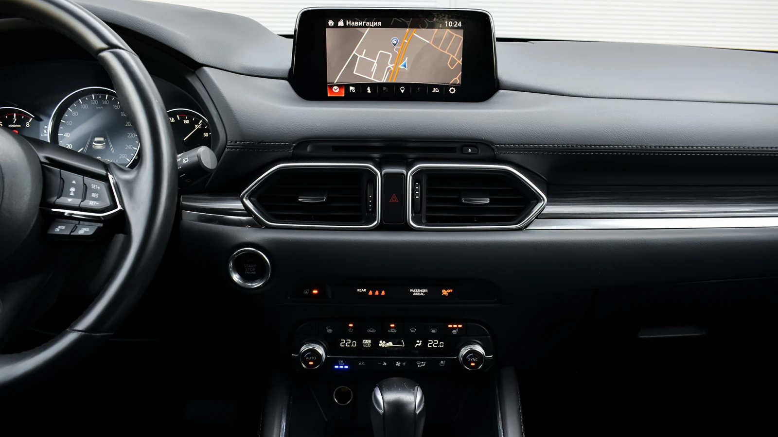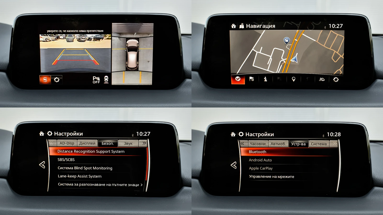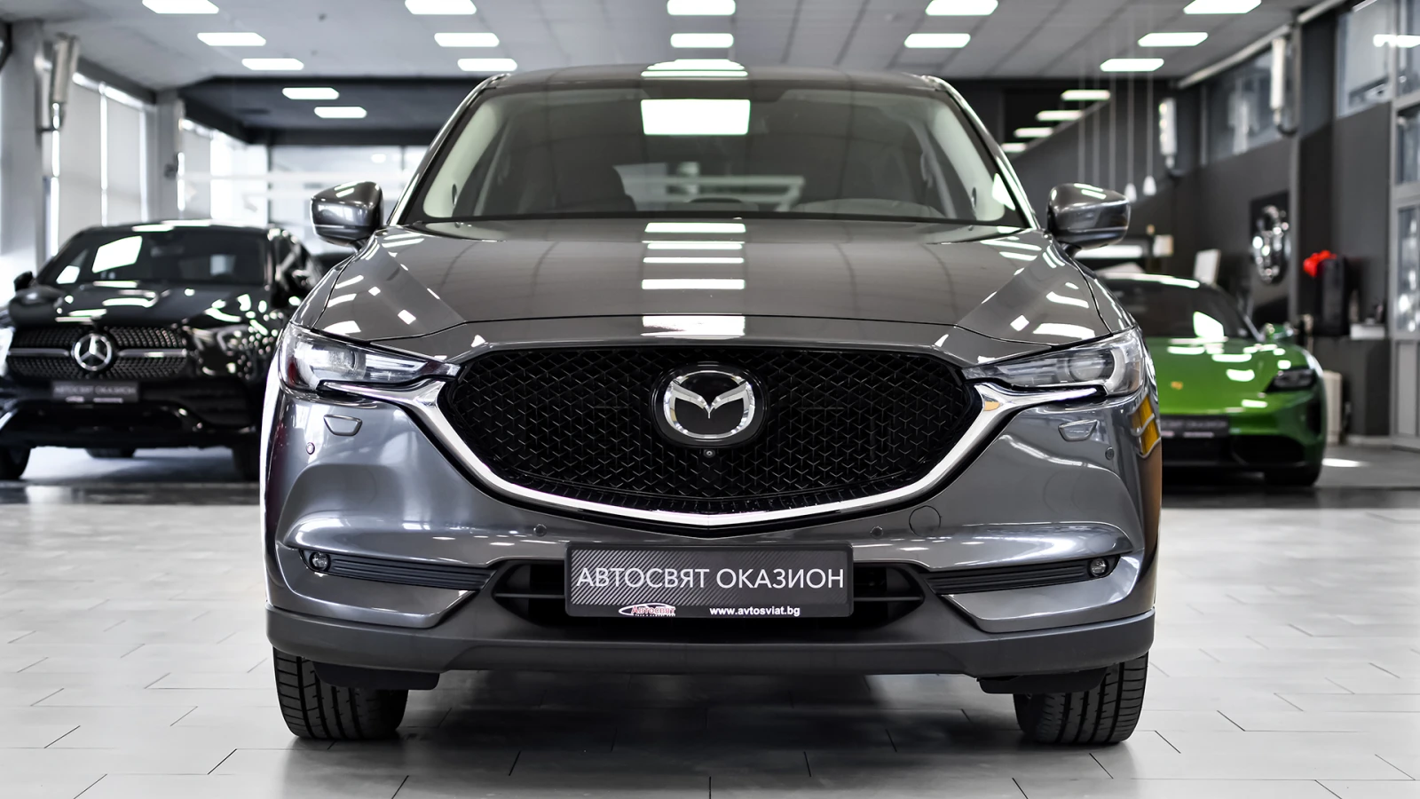 Автосвят ООД - официален представител на Opel и Mazda, предлага на Вашето внимание клиентски автомобил Mazda CX-5 ULTIMATE 2. 5 SKYACTIV-G 4x4 Automatic Безупречно техническо състояние, екстериор и интериор. Автомобилът е регистриран. Автомобилът се използва ежедневно и е възможно отклонение от обявените километри към датата на публикуване на обявата. За оглед на автомобила е необходимо предварителна уговорка. Допълнителни услуги: - лизинг; - сътрудничество при регистрация; - възможност за обратно изкупуване; - посредничество при застраховане; - посредничество при завеждане на щети при застрахователя. Цвят - Machine Gray Metallic ABS / EBD/ EBA антиблокираща спирачна система, с разпределение на спирачното усилие и спирачен асистент за екстремно спиране DSC / TCS системи за динамичен контрол на траекторията и срещу прибуксуване и поднасяне на автомобила 8 въздушни възглавници - предни, странични и завеси за всички места ISOFIX - система за монтиране на детско столче на задните външни места Active headrest - активни предни подглавници предпазващи от травми при камшичен удар ESS (Emergency Stop Signal) - автоматично включване на аварийните мигачи при рязко спиране HHA - Hill Hold Assist - система за подпомагане при потегляне по наклон TPMS - система следяща налягането на гумите чрез директно измерване STI (Smart Turn Indicator) - активиране на мигачите с леко докосване на превключвателя и автоматично изключване след 3 такта OPTITRON LED подсветка на контролните уреди на таблото в цвят лунно бяло и регулиране на яркостта Безключово стартиране и спиране на двигателя с бутон на таблото i-Stop система за изключване и рестартиране на двигателя при спиране или престой в трафик Coming / Leaving Home изпрати ме до вкъщи функция за забавено изгасване на светлините Mazda Info Display борд компютър SCBS (Smart city brake support) система предотвратяваща сблъсък в градска среда при скорост от 4 до 80 км/ч HMI интерактивен командер за управление на системите, разположен на конзолата между предните седалки с отделно регулиране на силата на звука Климатроник двузонален автоматичен климатик Автоматично включване на фаровете сензор за светлина Автоматично включване на чистачките сензор за интензивност на дъжда Допълнителен USB за предните места и 2 USB входа за задните места 12V изход Bluetooth система за безжично управление функциите на телефон BSM (Blind Spot Monitoring) - радарна система за следене на мъртвата зона - разпознава автомобили, които се приближават със скорост от 30 км/ч и повече, уведомявайки водача с предупредителен индикатор и звуков сигнал RCTA (Rear Cross Traffic Alert) - система сигнализираща за приближаващи пешеходци, велосипедисти или автомобили при маневра на заден ход Rear SCBS - ситема предотвратяваща сблъсък при движение назад със скорост от 2 до 8 км/ч DAA (Driver Attention Alert) - система следяща вниманието на водача, активна при скорост от 65 до 140 км/ч, която разпознава умората и пониженото внимание и насърчава водача към почивка Auto Hold функция - задържа автомобила на място независимо че е освободен педала на спирачката Цветна камера за обратно виждане при заден ход HBC (High Beam Control) - система за автоматично управление на къси / дълги светлини в зависимост от трафика HEAD UP display - цветен проекционен дисплей над таблото визуализиращ информация от навигационната система, круиз контрол, системите за сигурност, и скорост на движение и пътни знаци AFLS (Adaptive Front Light System) - LED предни фарове следящи кривата на завой LKA (