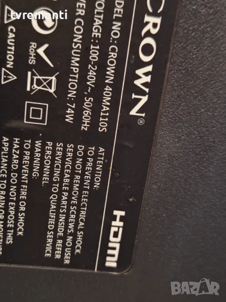 Main Board CV358H-T42-CROWN 40MA110S 40inc DISPLAY D40-K18 борда е гарантирано работещ Демонтиран от телевизор CROWN модел 40MA110Sсъс счупен дисплей D40-K18 тествана от нашия техник Ремонт на всички марки съвременни телевизори