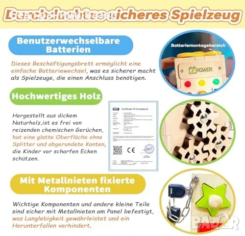 Образователна играчка с многофункционален дизайн: Развива двигателни умения, цветово разпознаване и логическо мислене чрез ангажиращи игри.
