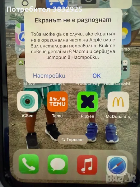 Всичко по телефона работи,единствената забележка е на последната снимка(екрана е сменян),грешката за екрана излиза при активиране на телефона и след това не се появява