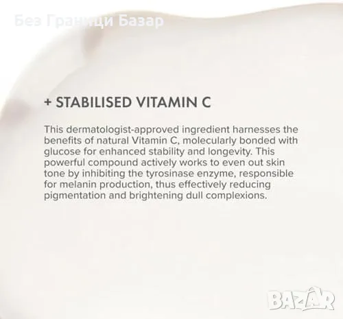 Формула с 15% стабилизиран витамин C за сияйна и подмладена кожа.