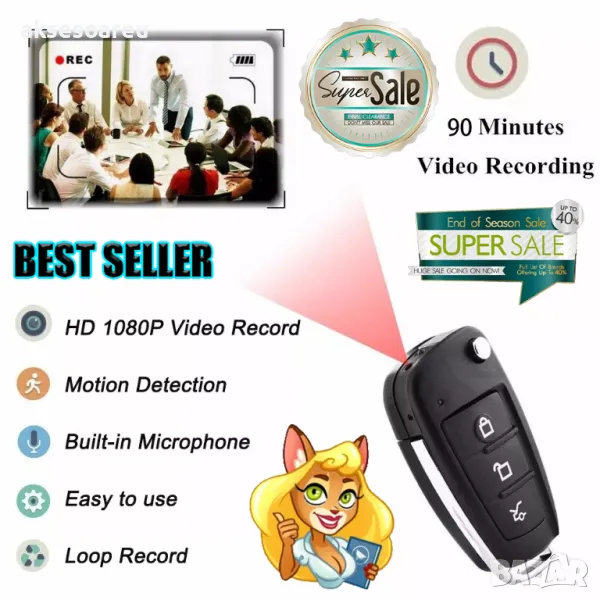 1080P мини камера в ключодържател за кола DVR камера за нощно