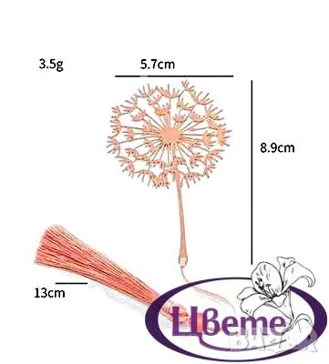 Много, много красива и изящна метална отметка за книги във формата на глухарче