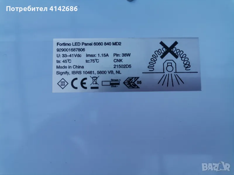 Здравейте, продавам LED панел за таван Fortimo 60х60см 3400lm,38W,заедно с бяла алуминиева рамка V - TAK. Цена 25 евро.
