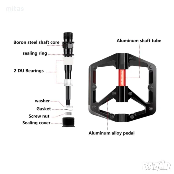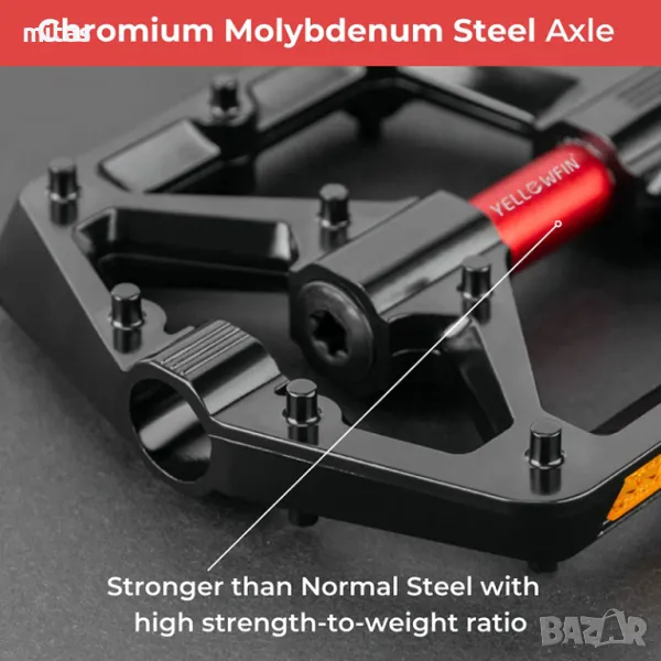 * Издръжливи и здрави материали: Изработени от високоякостен алуминий и ос от хром-молибденова стомана, тези педали са устойчиви на удари, окисляване и надраскване.