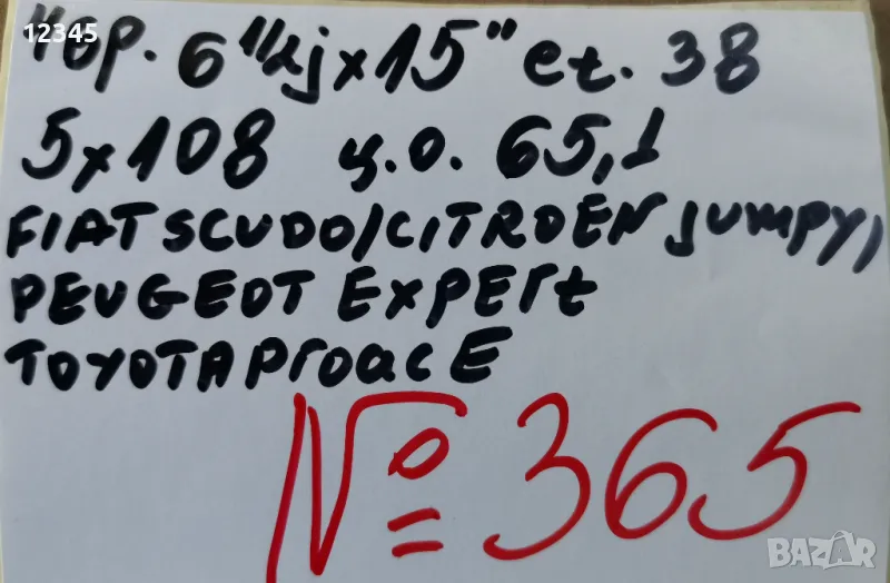 УСИЛЕНИ!!! като нови внос от Швейцария, не са карани в България, без кривини и заварки, нови вентили, цената е за брой, стават за fiat scudo-фиат скудо,citroen jumpy-ситроен джъмпи,peugeot expert-пежо експерт,toyota proace-тойота проаче и др. с параметри 6,5jx15’’ et38 5x108 ц. о.65,1