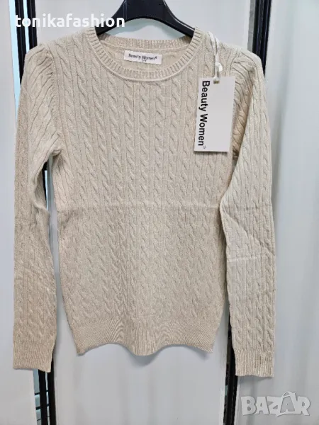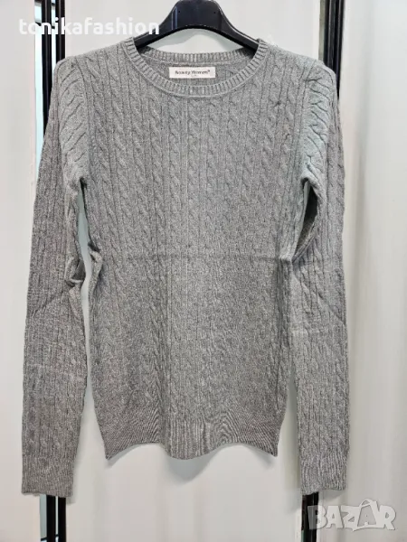 Вталена блуза с голяма еластичност, от тънко плетиво с плитки и обло деколте. Много меко заради състава си,вискоза 60%, полиамид 30%, еластан 10%.Цват екрю, светло сиво