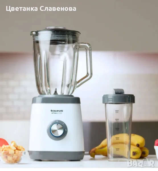 Блендерът Optima Go 1500 от Taurus съчетава 1500 W мощност с градуиран стъклен буркан от 1,5 L Неговите подвижни остриета от неръждаема стомана са идеални за натрошаване на лед и приготвяне на смутита или шейкове. С 2 скорости, Turbo функция и надеждна система за безопасност, той осигурява бързи и прецизни резултати. Подходящите за съдомиялна машина части и неплъзгащите се крачета го правят практичен и безопасен за ежедневна употреба.