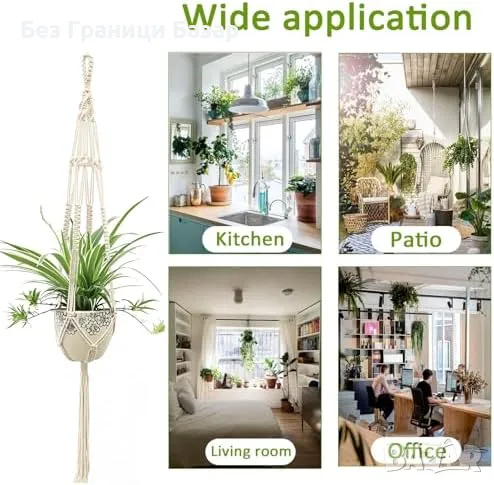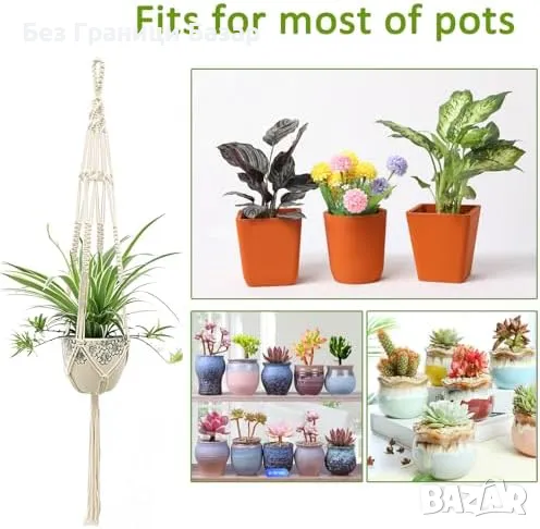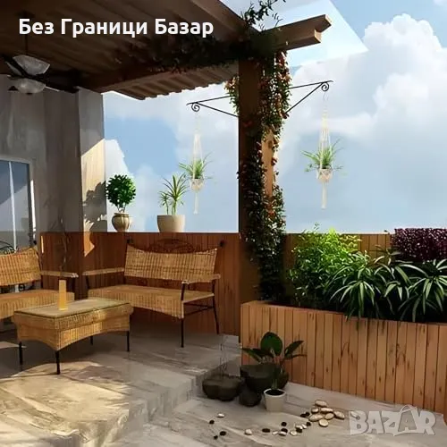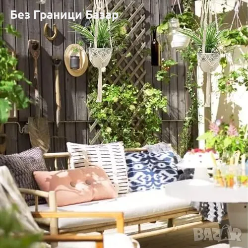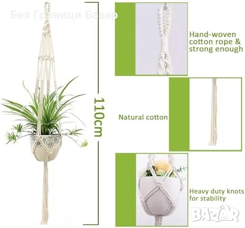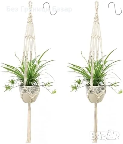 Нов Комплект 2 броя въжени държачи за саксии, за интериор и екстериор