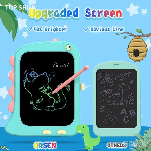 【СТРАХОТНИ ОБРАЗОВАТЕЛНИ И УЧЕБНИ ИГРАЧКИ ЗА МАЛЪЧКИ】 Играчките динозаври с LCD таблет за писане е идеална играчка за учене за деца 2, 3, 4, 5, 6, 7, 8 години, момчета и момичета. Дъската с драскулки на динозаври ORSEN помага на малките деца да освободят своето въображение и креативност. Може да се използва и като дъска за драскулки, блок за рисуване за деца, дъска за рисуване на малки деца, лек таблет за рисуване, дъска за писане, дъска за драскане, магическа графична таблетка. Идеални играчки и подаръци за момчета и момичета за връщане в училище, рожден ден, Коледа, Деня на благодарността, Великден и др.