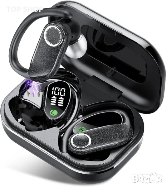 Безжични слушалки QXQ Q32, спортни Bluetooth 5.1 слушалки за поставяне в ушите с микрофон, HiFi стерео, 56H безжични слушалки за възпроизвеждане с калъф за зареждане с LED дисплей, IPX7 водоустойчив за тренировка при бягане