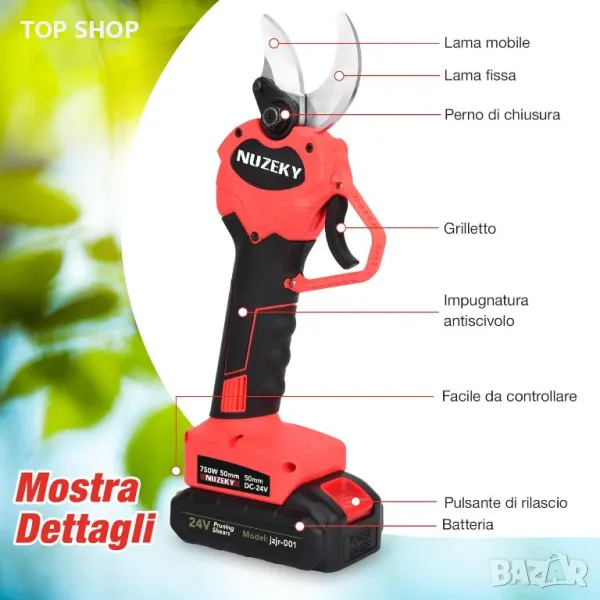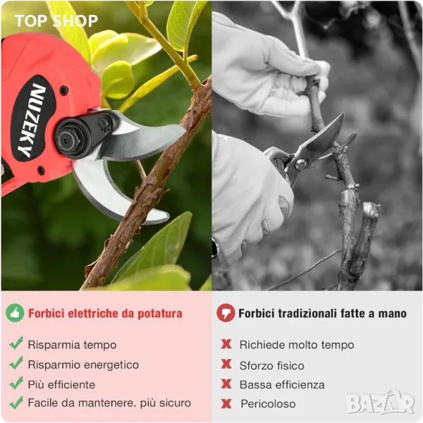 Остри и регулируеми: Електрическите ножици за подрязване NUZEKY са оборудвани с ковано острие Sharp SK5 с високо въглеродна стомана, което е изключително остро и издръжливо. С регулируемия диаметър на рязане можете също да регулирате 0-30 mm като клон.