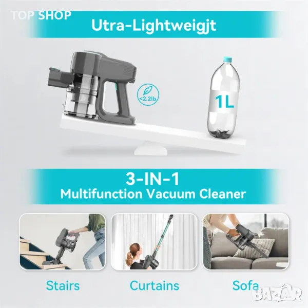Забравете за тежките и неудобни прахосмукачки, да това къде ще включите уреда! Просто вземетe от стоиката и почистете.