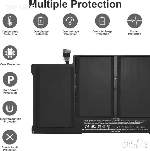 Батерията разполага с интелигентен чип с многократен защитен механизъм. Този чип следи гладкото функциониране на лаптопа и контролира зареждането на отделните клетки.
