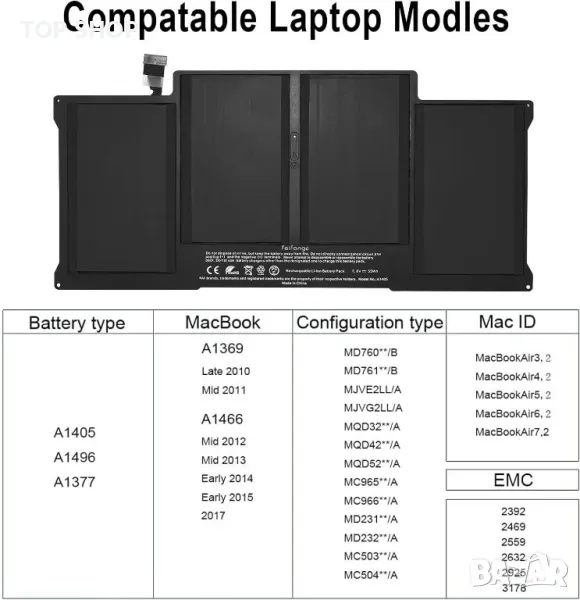 Apple съвместими A1496 батерии Shenzen 7200mAh (55Wh), 4 клетки Li-ion- polymer 7.6V