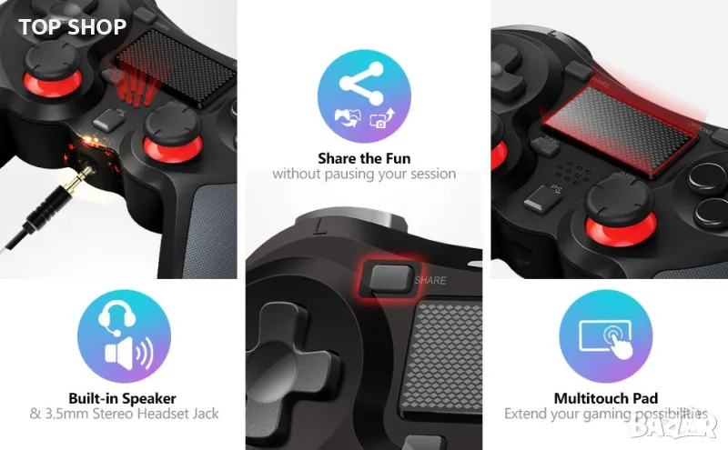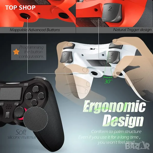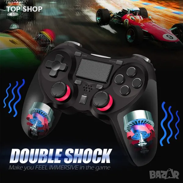Ново изживяване: Защо геймърите се кълнат в двойния шоков контролер TERIOS 5S? Тъй като има вграден високоговорител и жак за стерео слушалки, което ви позволява да изживеете любимите си игри в изцяло ново измерение. Безжичният контролер е съвместим с PS4/PS4 Pro/PS4 Slim и идеален за всички ваши любими игри.