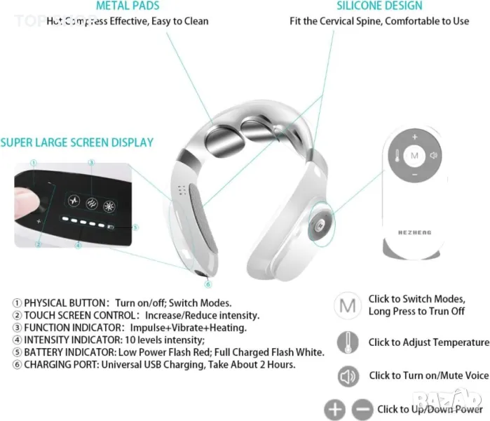 hezheng безжичен преносим масажор силиконов свързване болка във врата студена умора болка във врата удобен