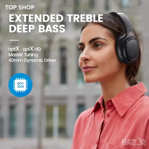 【Време за възпроизвеждане от 80 часа】 Насладете се на 80 часа време за възпроизвеждане в стандартен режим, 45 часа безжичен ANC режим.